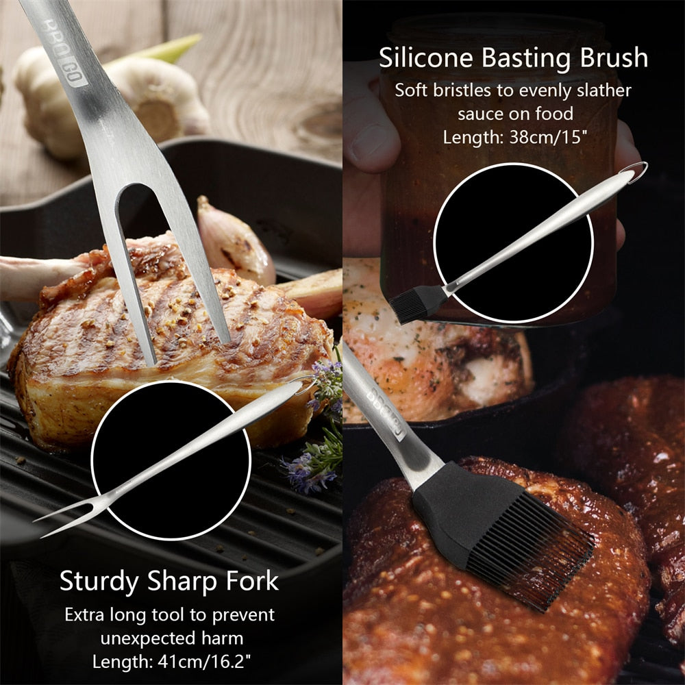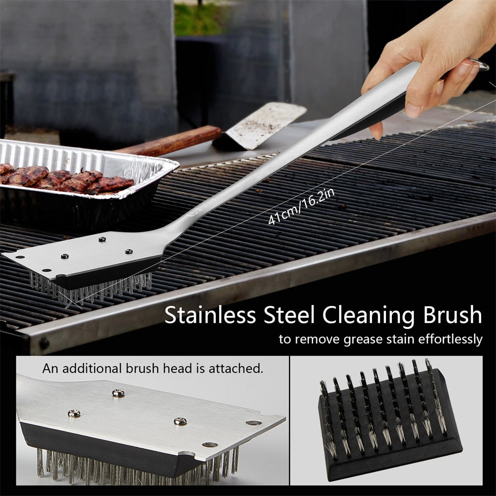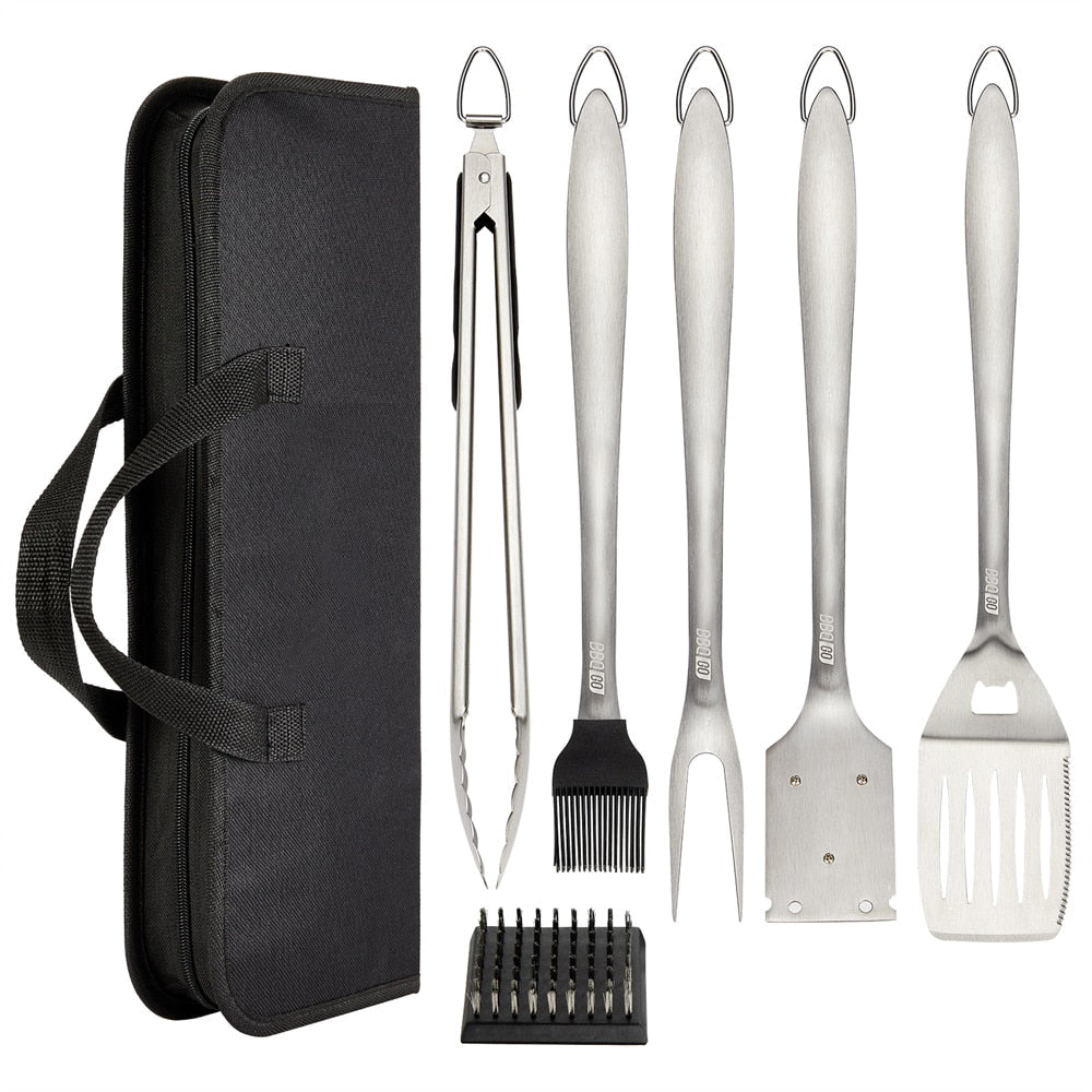 Wir wissen, dass du ein großartiges BBQ liebst und deshalb bietet Kitchen Groups dieses Edelstahl BBQ-Werkzeugset an. Es besteht aus einem Wender, einer Gabel, einer Zange, einem Pinsel und Spießen. Mit diesem Werkzeugset wird das Wenden von Fleisch, Gemüse und mehr zum Kinderspiel! Mit dem BBQ-Werkzeugset wirst du dein nächstes Grillfest mit Stil, Leichtigkeit und Komfort genießen.
