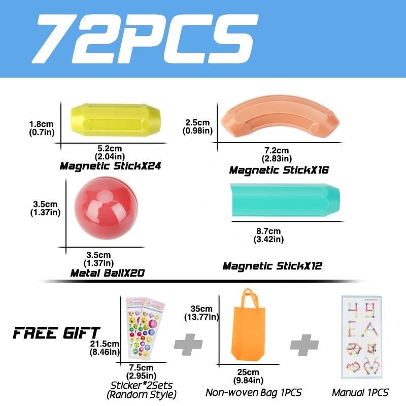 Mit 25/36/42/64/72 Teilen in verschiedenen Formen kann Ihr Kind zwischen gebogenen & geraden Formen in unterschiedlichen Längen wählen, ihre Kreativität entwickeln und komplizierte Designs mit unseren schillernden PASTELLFARBEN, die die Vorstellungskraft anregen und jedem Modell einen künstlerischen Touch verleihen, erstellen, sodass jeder Tag zu einer Feier mit dem ballonartigen Stil der Magnete.