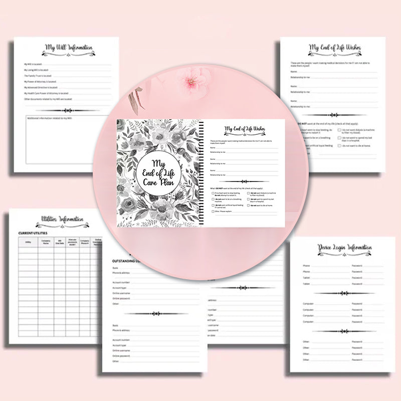 Unser umfassender und unterhaltsamer End-of-Life-Planer beinhaltet alles, was Ihre Familie und/oder Freunde wissen müssen, falls Sie verstorben sind oder nicht mehr handlungsfähig sind... von finanziellen Angaben über Versicherungsdetails bis hin zu Ihren Wünschen zur medizinischen Versorgung am Lebensende und darüber hinaus!