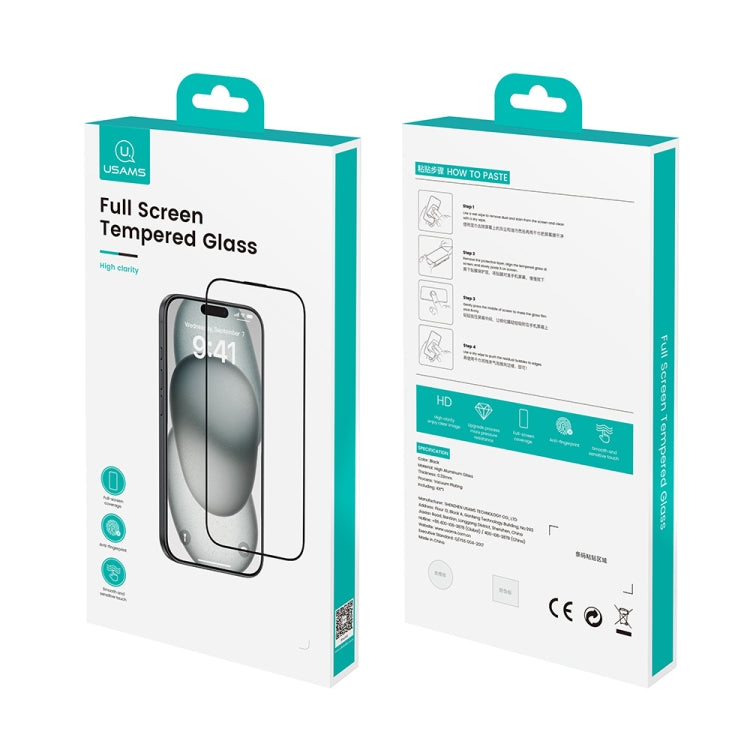 Frendorf | Für iPhone 16 Plus USAMS 0.3mm 9D Hochalumina Vollbild gehärtete Folie (Schwarz)