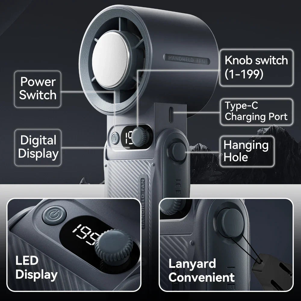 💨 3-in-1 Design: Stelle ihn auf, halte ihn in der Hand oder trage ihn freihändig – ideal fürs Büro, auf Reisen oder beim Sommerjoggen.