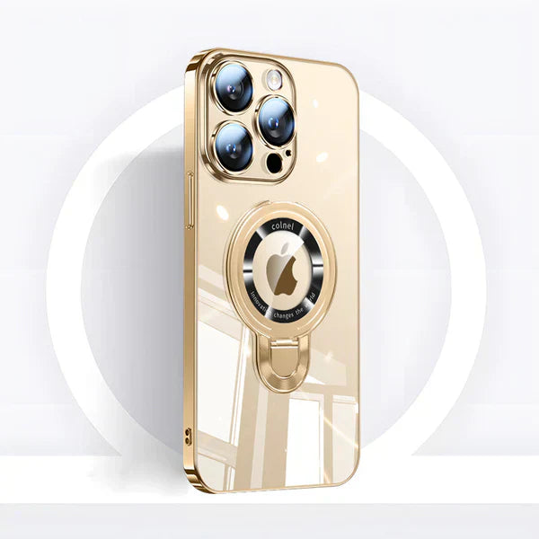 Frendorf | iPhone MagSafe Serie | Transparente elektroplattierte rotierende Ständer-Handyhülle