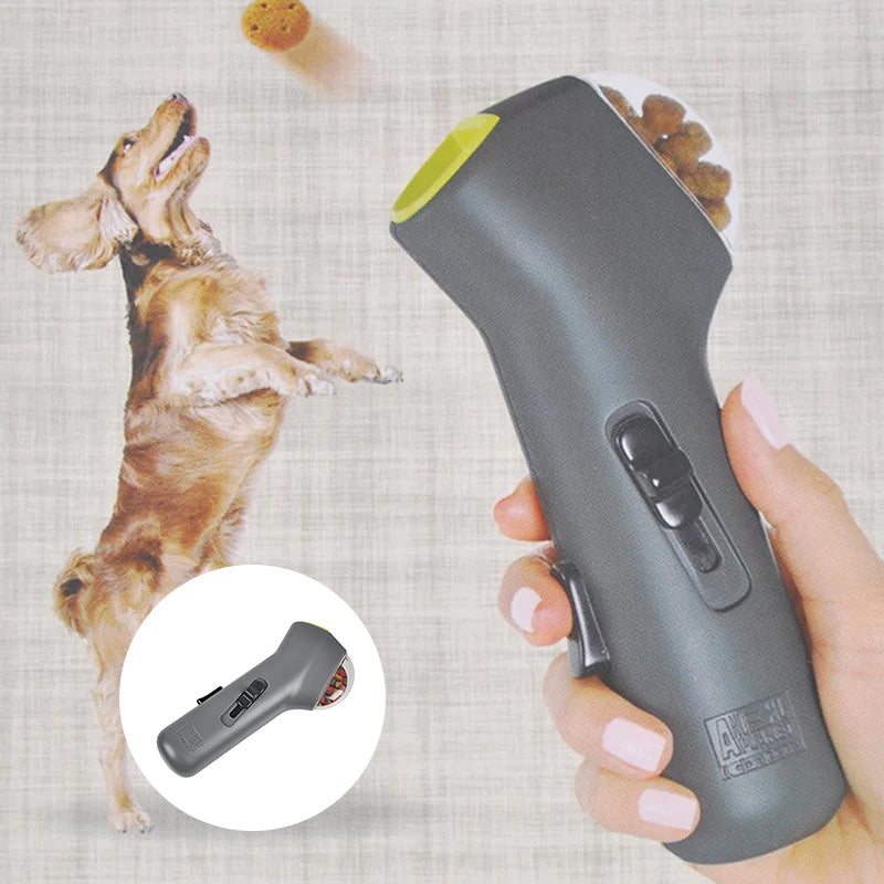 Einfach zu bedienen Mit seinem einfachen, aber effektiven Design ist der Futterspender leicht zu bedienen. Laden Sie einfach das Lieblingsleckerlis Ihres Haustieres in die Schleuder, ziehen Sie den Startmechanismus zurück und lassen Sie los, um das Leckerli durch die Luft zu katapultieren.