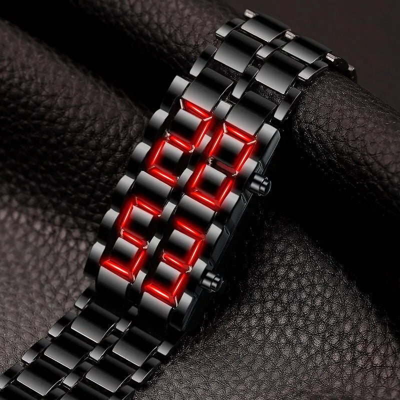 Wenn die Uhr ausgeschaltet ist, sieht sie aus wie ein schickes Metallarmband – aber sobald das LED-Licht aktiviert wird, erstrahlt ein atemberaubendes Lava-Blau, das alle Blicke auf sich zieht.