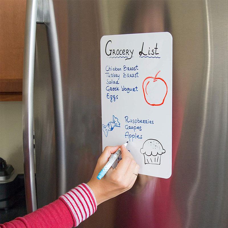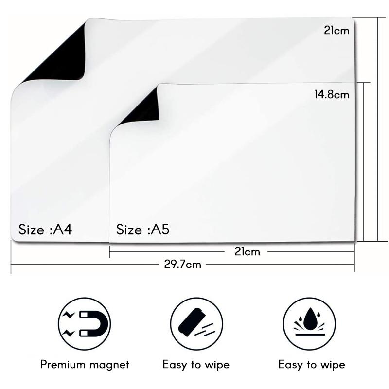 ✅ STABILER GRIFF - KEINE FALTEN - EINFACH ZU HANDHABEN - Die magnetische Tafel hat einen starken Halt auf Stahloberflächen und macht aufgrund ihrer Dicke beim Handling keine Falten. Sie kann magnetische Gegenstände halten, wenn sie auf dem Kühlschrank, Gefrierschrank oder anderen Metalloberflächen platziert wird, und wegen ihrer schön abgerundeten Ecken lässt sie sich leicht entfernen, ist sehr flexibel und passt gut in den Kühlschrank.