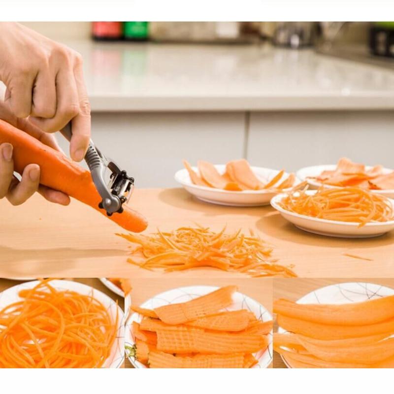Dieses beeindruckende Küchenwerkzeug ist ein Muss! Es eignet sich hervorragend für verschiedene Arten von Obst und Gemüse! Stabil, langlebig, spülmaschinenfest, leicht zu reinigen und benutzerfreundlich! Egal, welche Aufgabe ansteht, dieser multifunktionale Schäler und Zester bewältigt Unebenheiten und Kurven problemlos, ohne zu stocken oder an Schärfe einzubüßen. Der ergonomische, rutschfeste Griff sorgt bei wiederholtem Gebrauch für hohen Komfort und ist einfach zu handhaben. Vielseitig einsetzbar; gerader Schäler - perfekt zum Schälen von hartschaligem Gemüse und Obst; nutzen Sie ihn, um Julienne-Streifen für Salate oder Dekorationen zu kreieren; die gezackte Kante eignet sich ideal zum Schälen von glitschigen und wachsigen Früchten.