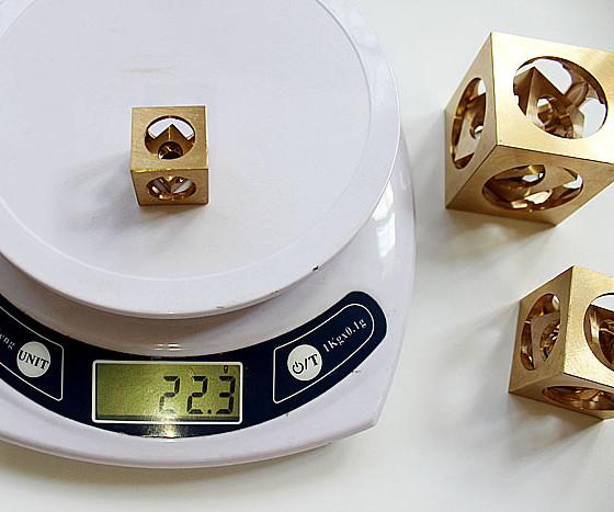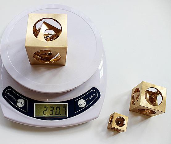 Der Mechanismus dieses Artikels ist äußerst raffiniert. Der äußere Würfel beinhaltet einen größeren inneren Würfel, und in diesem steckt ein noch kleinerer, der ebenfalls beweglich ist.