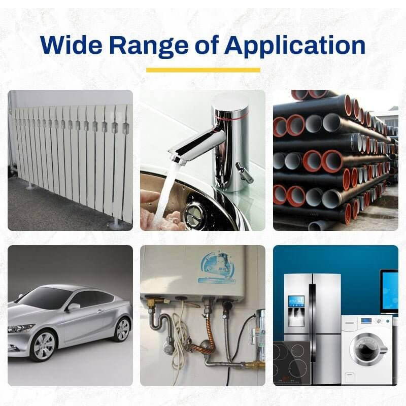 Hoch- und tiefenbeständig gegen Temperaturen, ideal für die Reparatur sämtlicher Metallarten, einschließlich Stahl, Pumpen, Wassertanks, Kraftstofftanks, Motoren, Haushaltsgeräte, Maschinen und mehr.