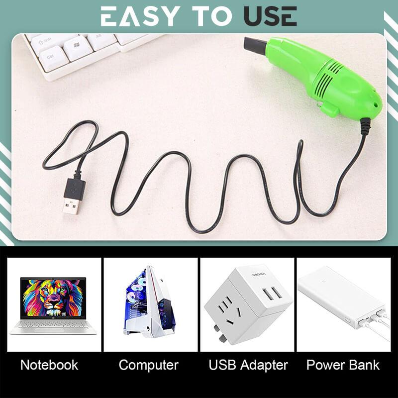 Der Staubsauger wird direkt über den USB-Anschluss betrieben, sodass keine zusätzliche Stromquelle erforderlich ist. Er ist leise und energieeffizient.