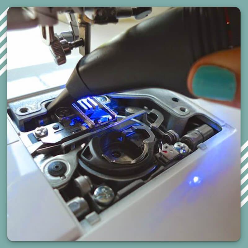 Unser Mini-Staubsauger wurde so konzipiert, dass er eine perfekte Mischung aus starker und sanfter Saugleistung bietet. Er entfernt mühelos Fusseln und Flusen aus Ihrem Spulenbereich, ohne die empfindlichen Teile Ihrer Nähmaschine zu verletzen.