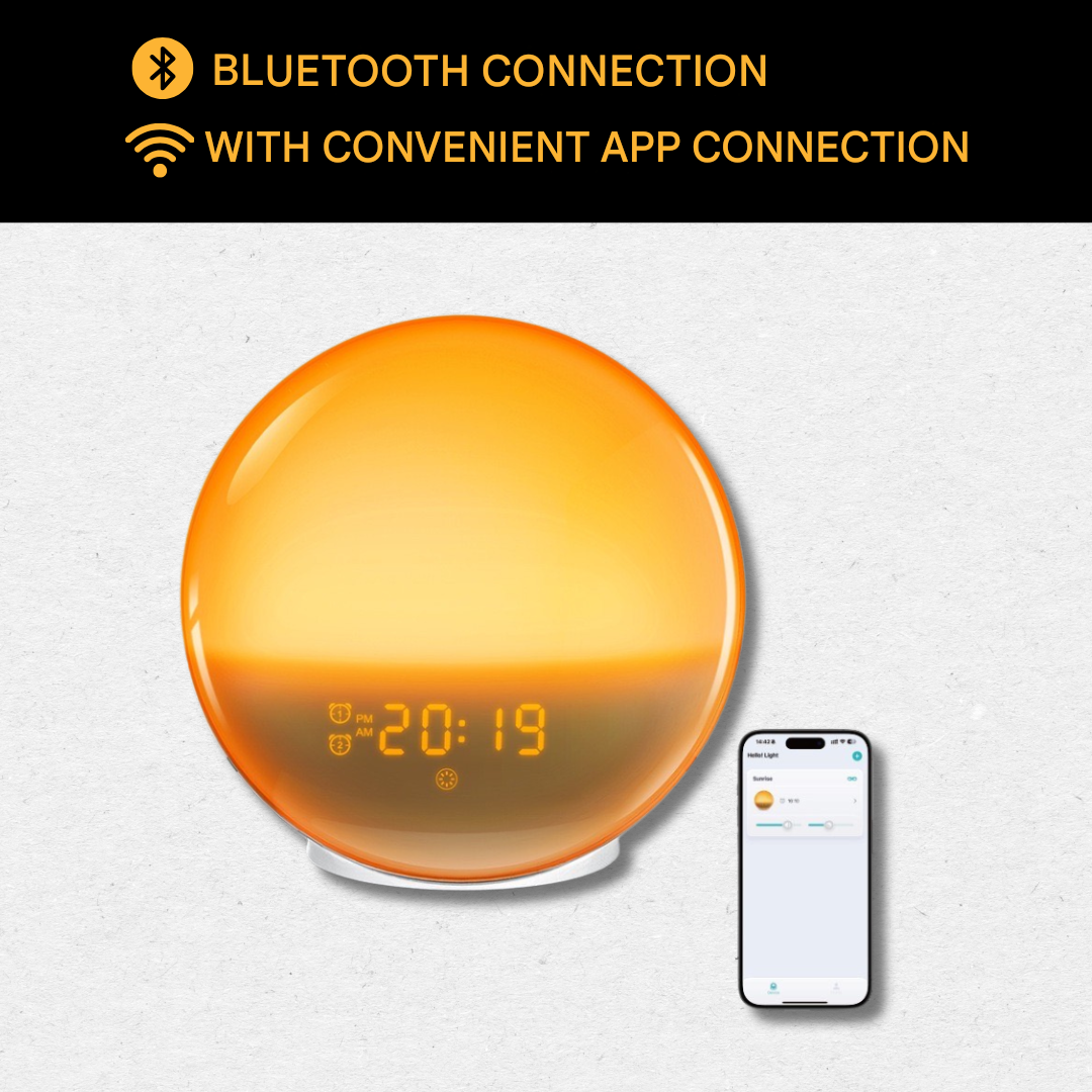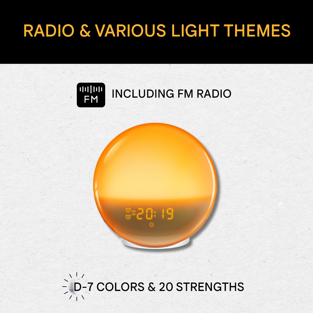 Starten Sie Ihren Tag entspannt mit unserem GlowRise. Dieser neuartige Wecker-Radio vereint die Simulation von Sonnenaufgängen und Sonnenuntergängen mit beruhigenden Geräuschen, um Ihren Schlafzyklus zu fördern. Entwickelt, um Sie sanft zu wecken und Ihnen beim Entspannen zu helfen, ist der GlowRise die ideale Ergänzung für einen gesunden Lebensstil.