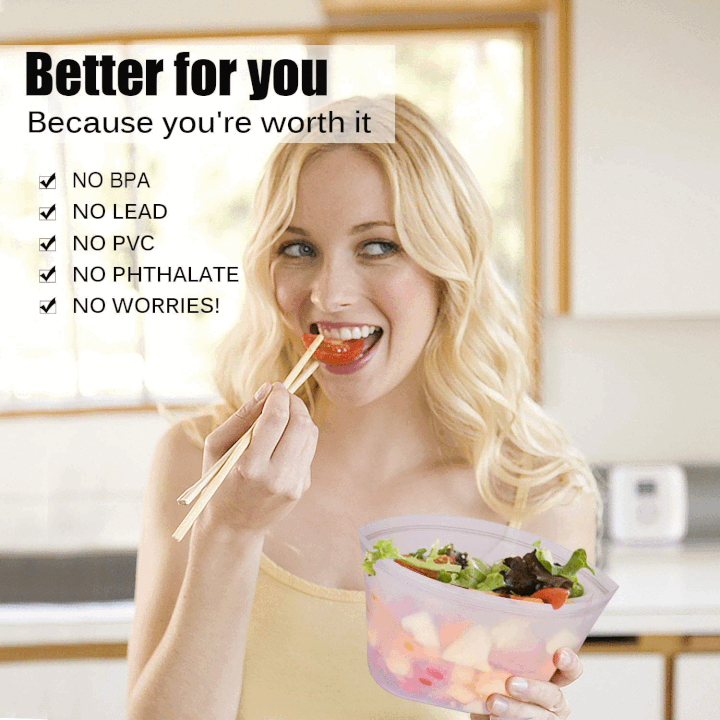 • Zusätzlich sind sie flexibel und dehnbar, sodass sie auch im Gefrierschrank genutzt werden können. Drücken Sie die Luft heraus und schließen Sie den Reißverschluss. Auf Wiedersehen, Gefrierbrand.
