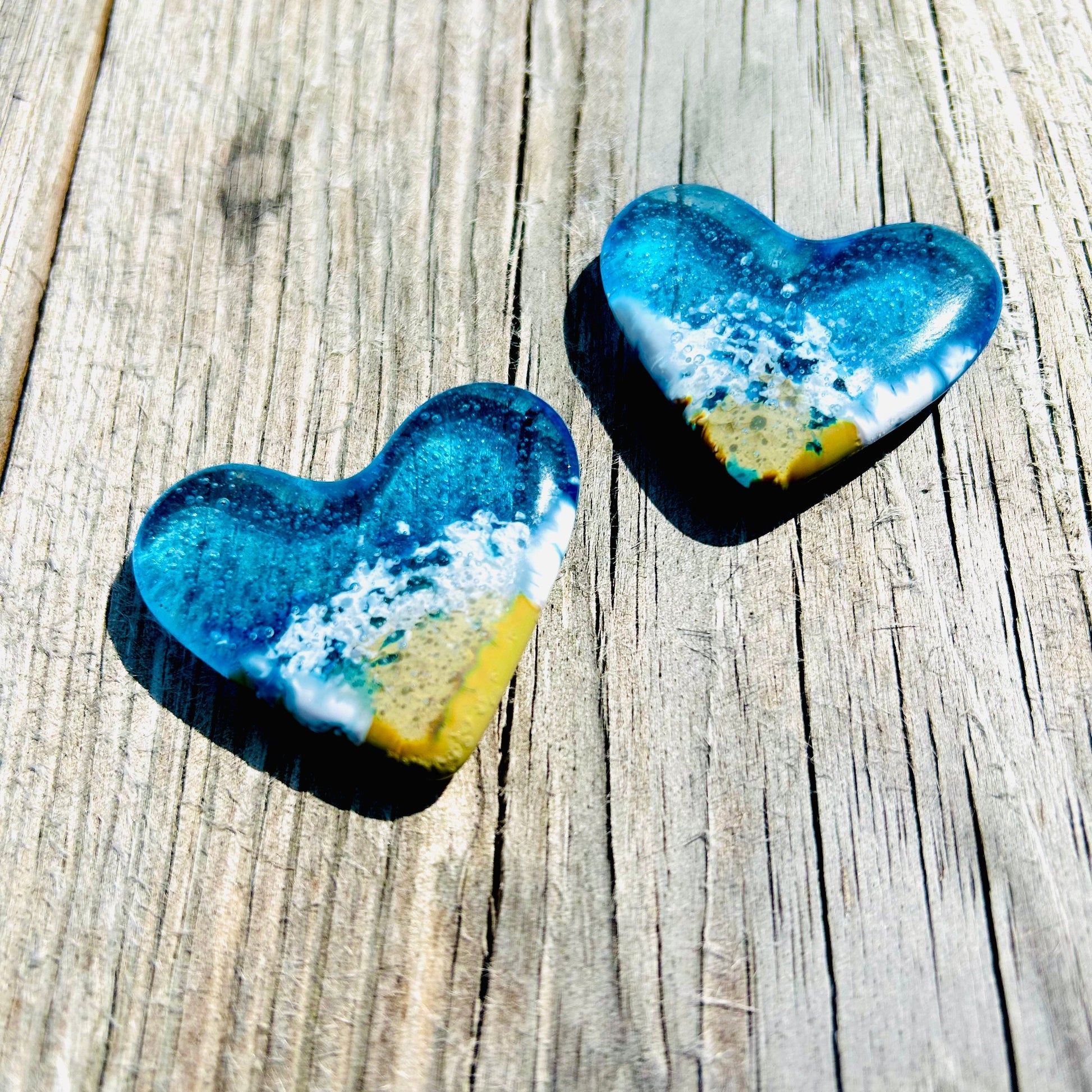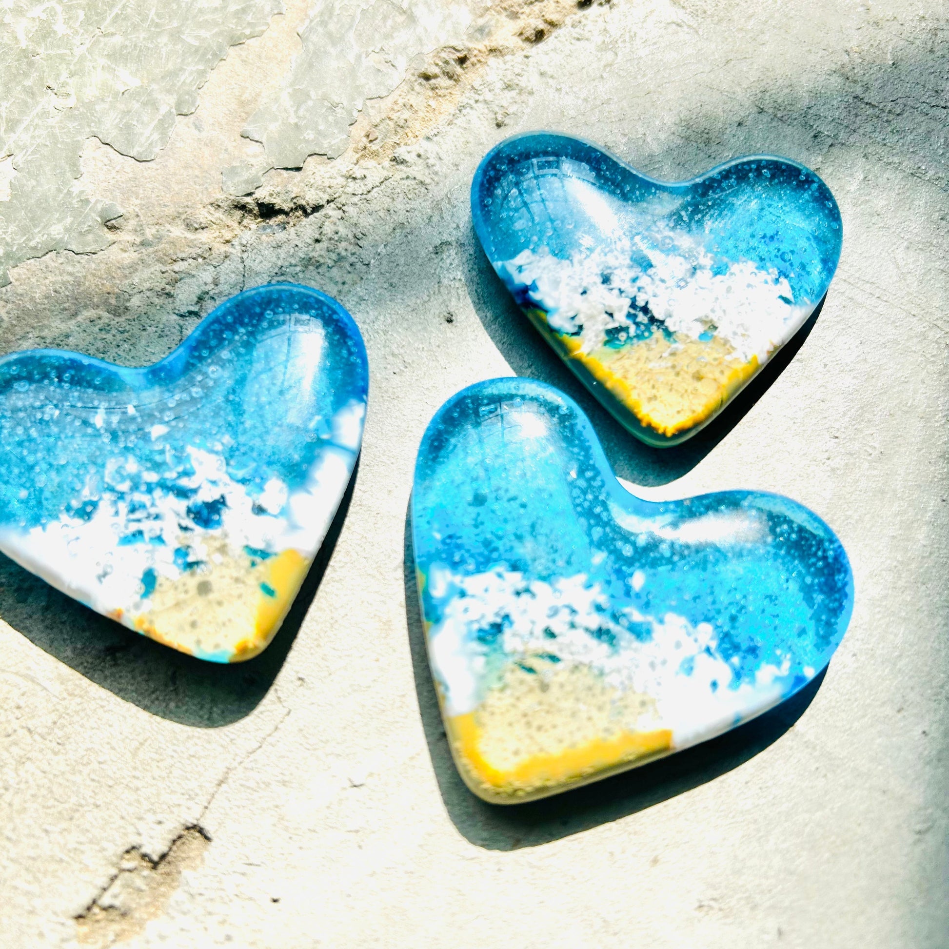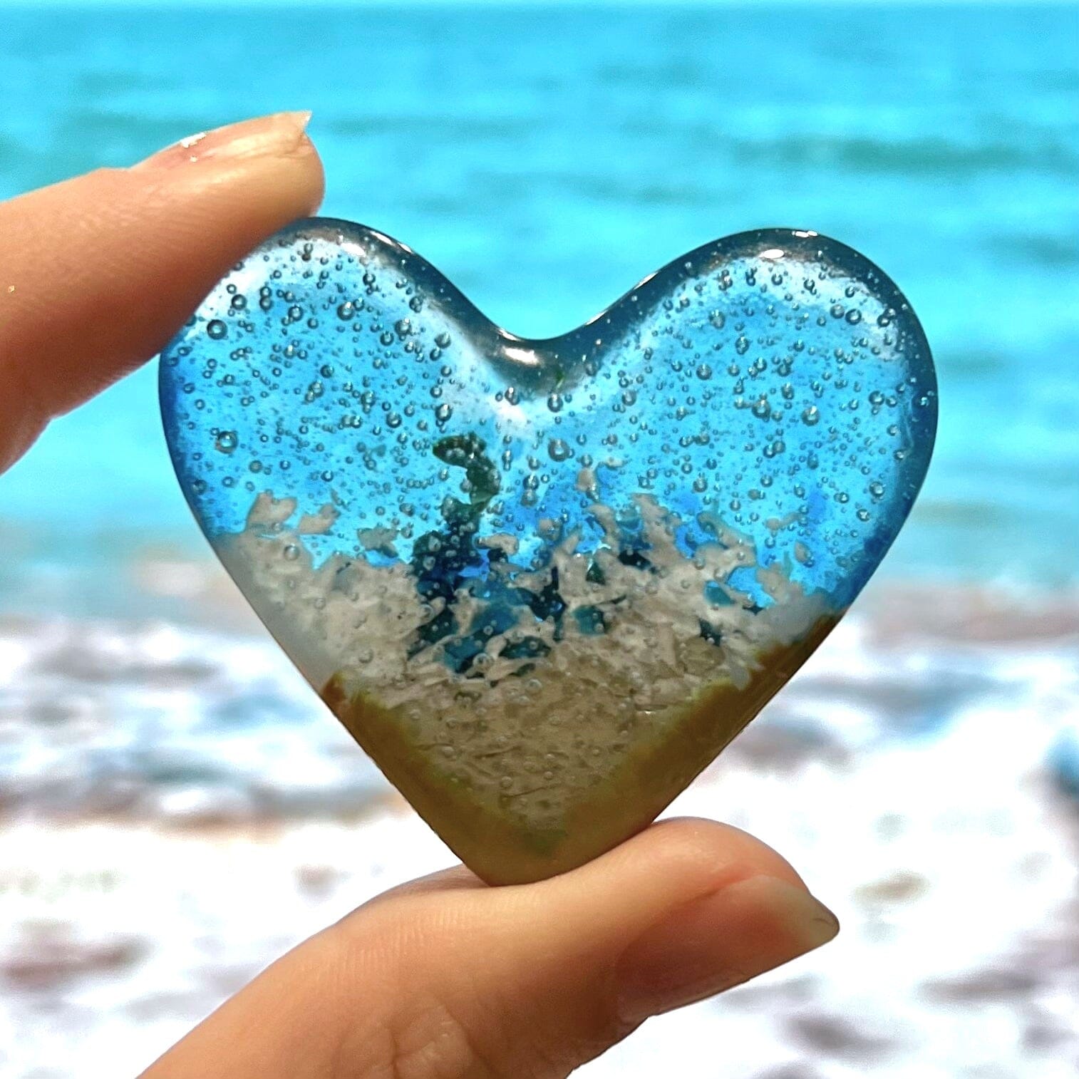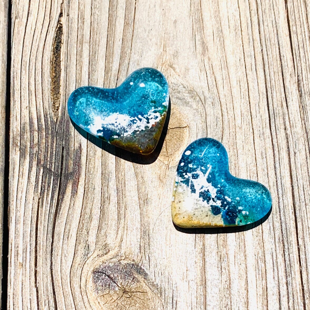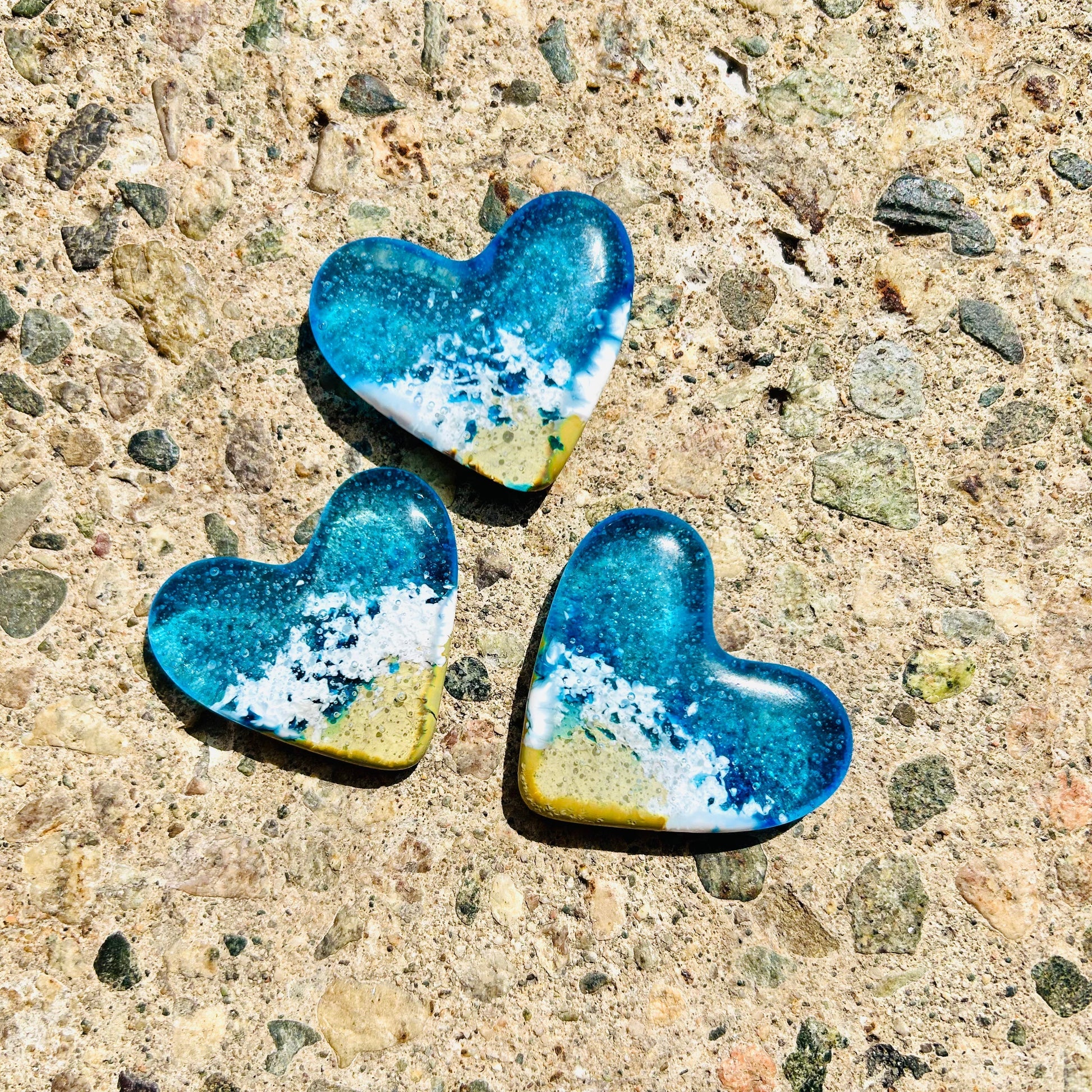 Diese wundervollen Taschenherzen aus geschmolzenem Glas werden aus recyceltem Glasmaterial liebevoll von Hand gefertigt.