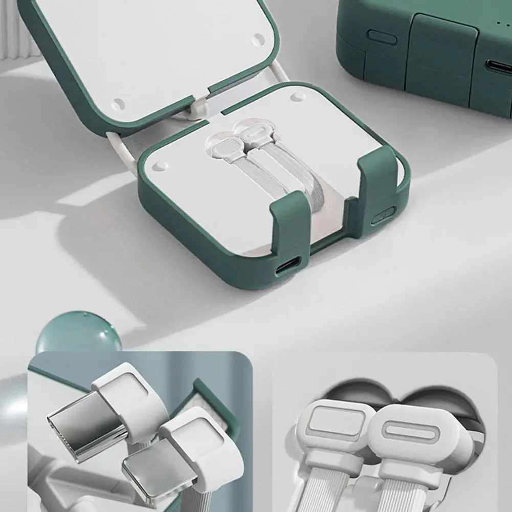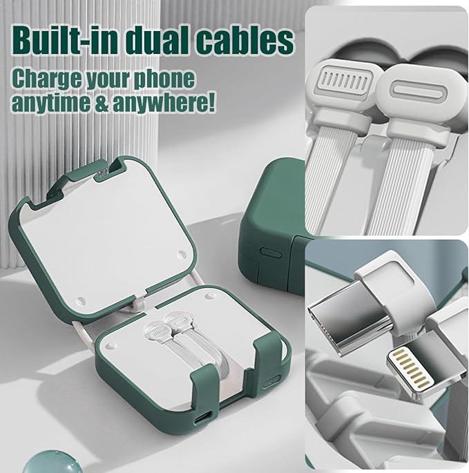 🔌 Integrierte Doppelkabel für maximalen Komfort! Verabschieden Sie sich von der Notwendigkeit, mehrere Ladekabel auf Reisen mitzunehmen. Unsere Handyhalterung kommt mit integrierten Doppelkabeln für iPhone und Type-C-Geräte. Teilen Sie die Powerbank mit Freunden, unabhängig von ihren Gerätetypen.