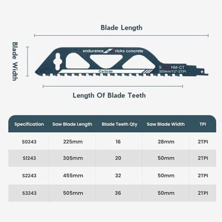 Das Säbelsägeblatt ist ideal für das Schneiden von Ziegeln und Beton und passt zu allen typischen Säbelsägemarken.