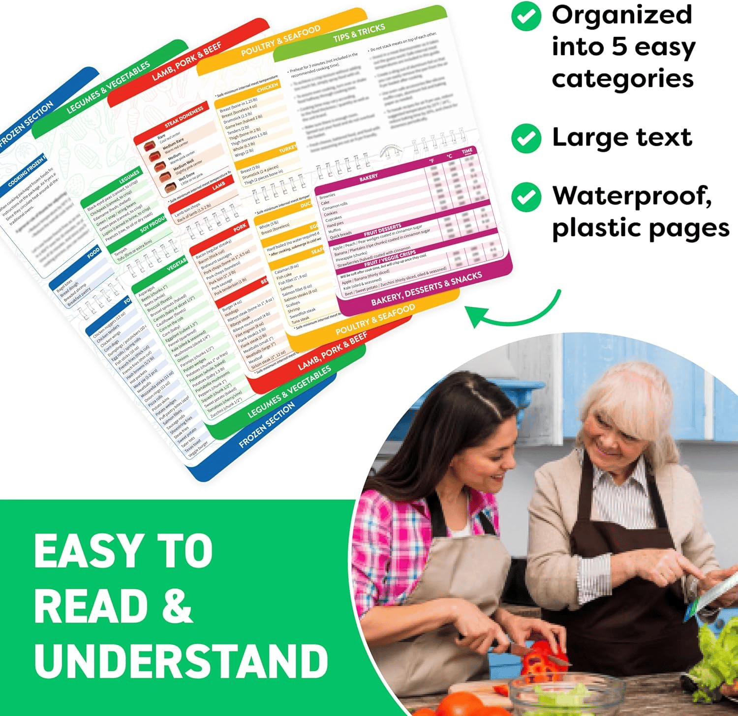 • Magnetische Spickzettel für die Kochzeit - 7 "x 6" Zoll mit strapazierfähigen Kunststoffseiten. Praktisch, um Kochmessungen am Kühlschrank zu befestigen oder aufzuhängen, für eine schnelle Übersicht. Wasserdicht und reißfest, diese magnetische Luftfritteusen-Tabelle hat starke Magnete, die jahrelang brauchbar bleiben werden.