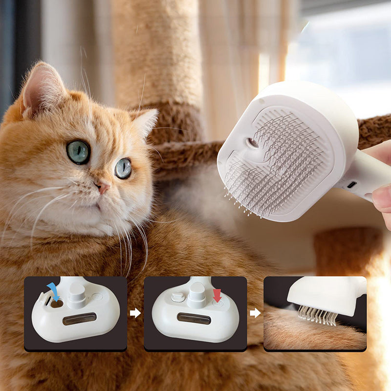 • Sprühfunktion für samtweiche Pflege: Unsere Sprüh-Katzenbürste vereint die Annehmlichkeit der Fellpflege mit dem zusätzlichen Plus eines feinen Sprühnebels, der Ihrem Haustier ein luxuriöses Erlebnis wie im Spa bietet. Der feine Sprühnebel optimiert das Bürsten, minimiert Knoten und Verfilzungen und verhindert verstreutes Fell, wodurch die Fellpflege mühelos wird.