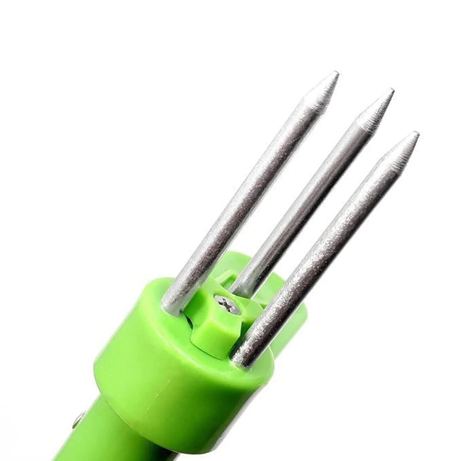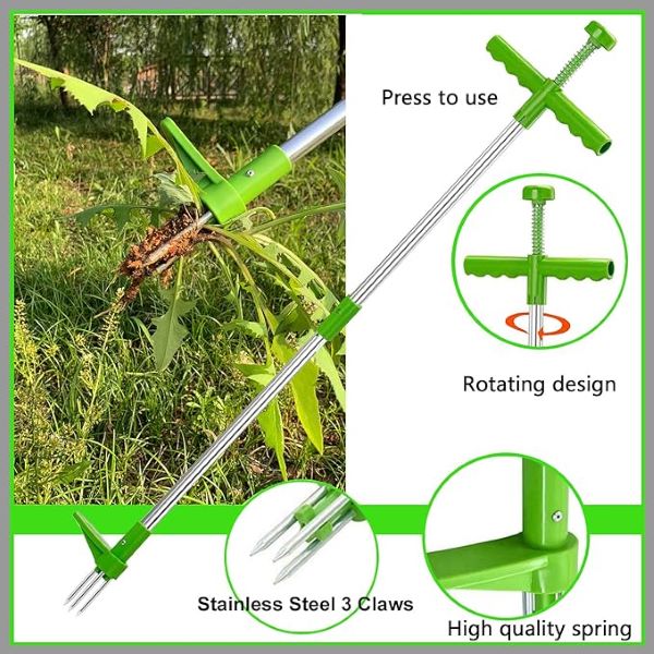 Das Gerät entfernt das Unkraut vollständig von der Wurzel mithilfe eines dreizackigen Kopfes und verhindert so weiteres Wachstum. Komfort steht hier im Vordergrund! Der lange Griff ermöglicht es Ihnen, die Arbeit zu erledigen, ohne sich bücken oder vorlehn zu müssen, sodass unangenehme Rückenschmerzen vermieden werden. Es ist aus einer robusten Aluminiumlegierung gefertigt, die das Anheben erleichtert.