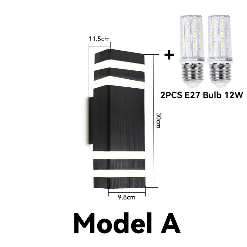 Frendorf | Außenwandleuchte – Moderne wasserdichte Auf- und Abwärts-LED-Lampe mit 2PCS E27-Glühbirnen für Garten, Veranda, Balkon und Außenwände (110V–220V, IP65 klassifiziert)