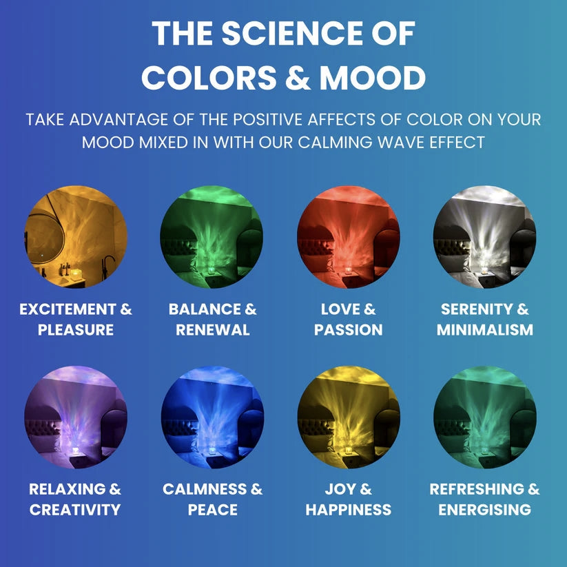 Mit seinem beeindruckenden Farbspektrum und der beruhigenden Wellenbewegung hilft er Ihnen, sich besser zu fühlen und jede Nacht erholsamer zu schlafen!