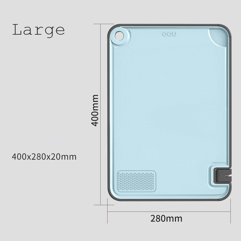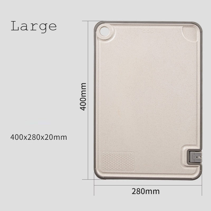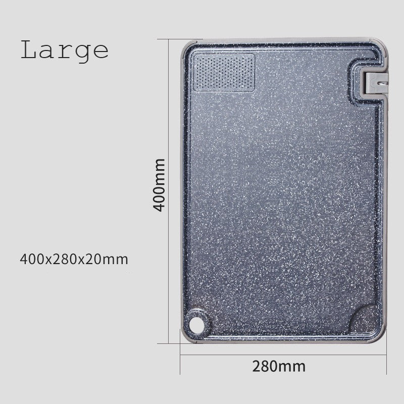 Verzichten Sie auf aufwendige Reinigungen und kümmern Sie sich um Ihre Messer, während Sie köstliche Speisen zubereiten.Dieses Schneidebrett bietet eine gleichmäßige, strapazierfähige Oberfläche für die Zubereitung von Lebensmittel und schützt Ihre Arbeitsflächen sowie Geschirr vor Kratzern.Außerdem enthält es einen integrierten Messerschleifer im Griff, der für eine optimale Schärfe sorgt und raue Stellen beseitigt.Hinzu kommt eine grobe Knoblauchreibe, um zusätzliche Geschmacksnuancen zu erzielen.Die Rillen rund um das Brett sind so konzipiert, dass sie Flüssigkeiten effizient auffangen.Dank der integrierten Handgriffe bleibt das Brett fest und stabil auf Ihrer Arbeitsfläche liegen.Es ist zudem leicht zu reinigen und wird im Laufe der Zeit keine unangenehmen Gerüche oder Verformungen annehmen.Mit einer Dicke von 2 cm ist es stabil genug für den täglichen Gebrauch.Es eignet sich sowohl für das Schneiden von rohem Fleisch als auch für frisches Gemüse.Das Brett ist beidseitig verwendbar und kann gedreht werden, um als Backfläche zu fungieren.Hergestellt aus PP und OPD, hat es antibakterielle Eigenschaften und ist sicher in der Verwendung.