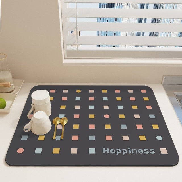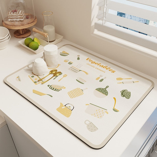 Verabschieden Sie sich von nassen und unordentlichen Küchentischen mit dem Quick Drying Kitchen Absorbent Drained Placemat von Kitchen Groups. Diese stilvolle Trockenmatte für den Tisch eignet sich perfekt zum Trocknen von Geschirr, Gläsern und Besteck und schützt gleichzeitig Ihren Tisch vor Wasserschäden. Mit ihrem schnell trocknenden Design ist diese Matte ein Muss für jede geschäftige Küche. Vereinfachen Sie Ihre täglichen Routinen und verbessern Sie das Aussehen und die Funktionalität Ihres Zuhauses.