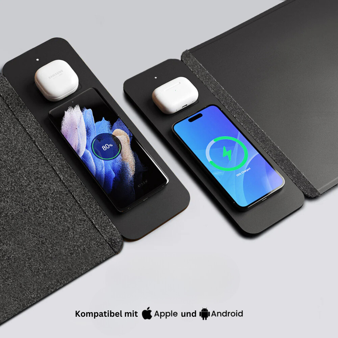 • Drahtloses Laden: Laden Sie Ihr Smartphone oder andere kompatible Geräte einfach und schnell über die integrierte Wireless-Ladefunktion. Keine lästigen Kabel – einfach ablegen und aufladen.