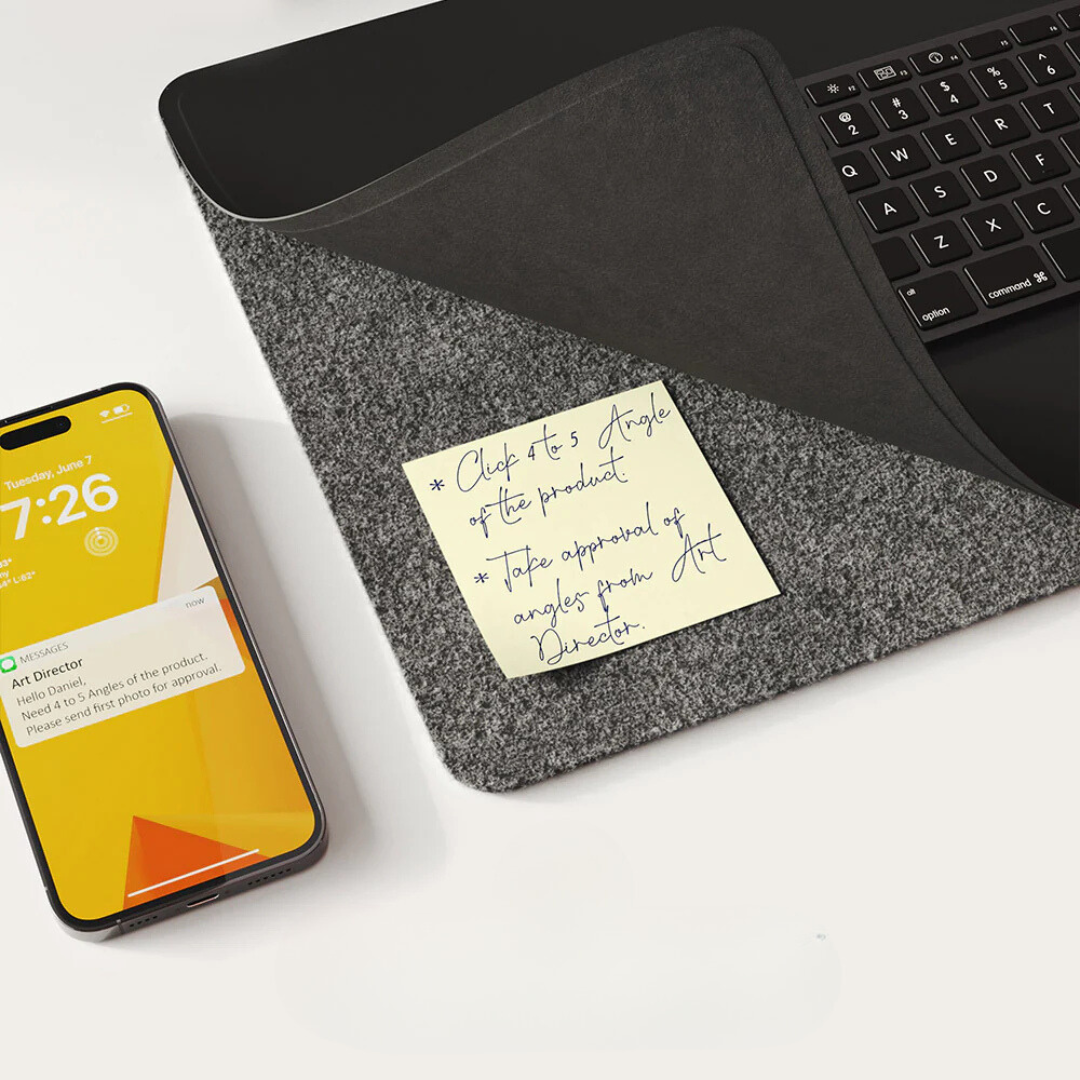 • Minimalistisches Design: Erhältlich in stilvollen Farbtönen, fügt sich die Schreibtischmatte nahtlos in jede moderne Einrichtung ein – sei es im Büro oder im Homeoffice.