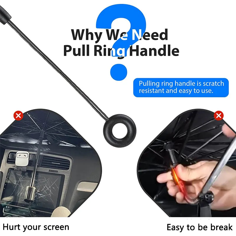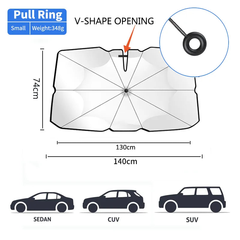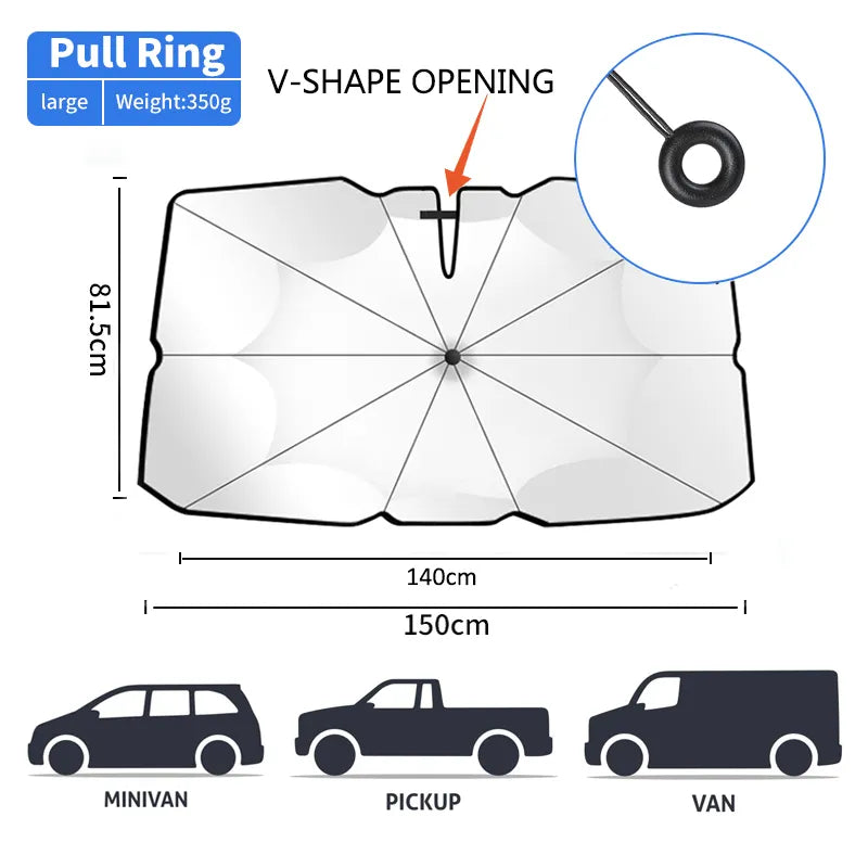 Dieser faltbare Auto-Frontscheibenregenschirm ist eine praktische Lösung, um das Innere Ihres Fahrzeugs vor den scharfen Strahlen der Sonne zu schützen. Sein Sonnenschutz-Design blockiert effektiv Wärme und UV-Strahlung, hilft, Ihr Auto kühler zu halten und Schäden an Armaturenbrett und Sitzen zu verhindern. Einfach zu benutzen und zu lagern, entfaltet er sich wie ein Regenschirm und kann bequem verstaut werden, wenn er nicht verwendet wird. Ideal für Fahrer, die das Innere ihres Autos pflegen und den Komfort an heißen Tagen verbessern möchten, ist dieser Frontscheibenregenschirm sowohl effizient als auch platzsparend.