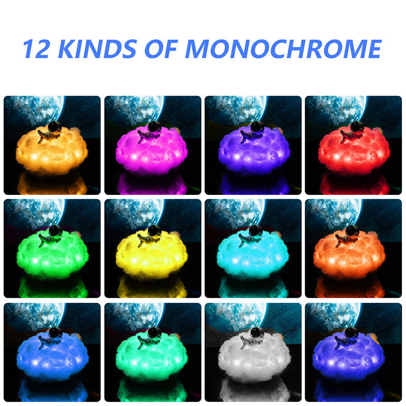 Diese LED-Lampe mit bunten Wolken und Astronauten ist ideal, um jedem Raum einen lustigen und verspielten Akzent zu verleihen. Sie verfügt über mehrere Farben, die mit einem einfachen Knopfdruck geändert werden können. Sie ist nicht nur stilvoll und auffällig, sondern schafft auch eine beruhigende und entspannende Atmosphäre in jedem Raum.