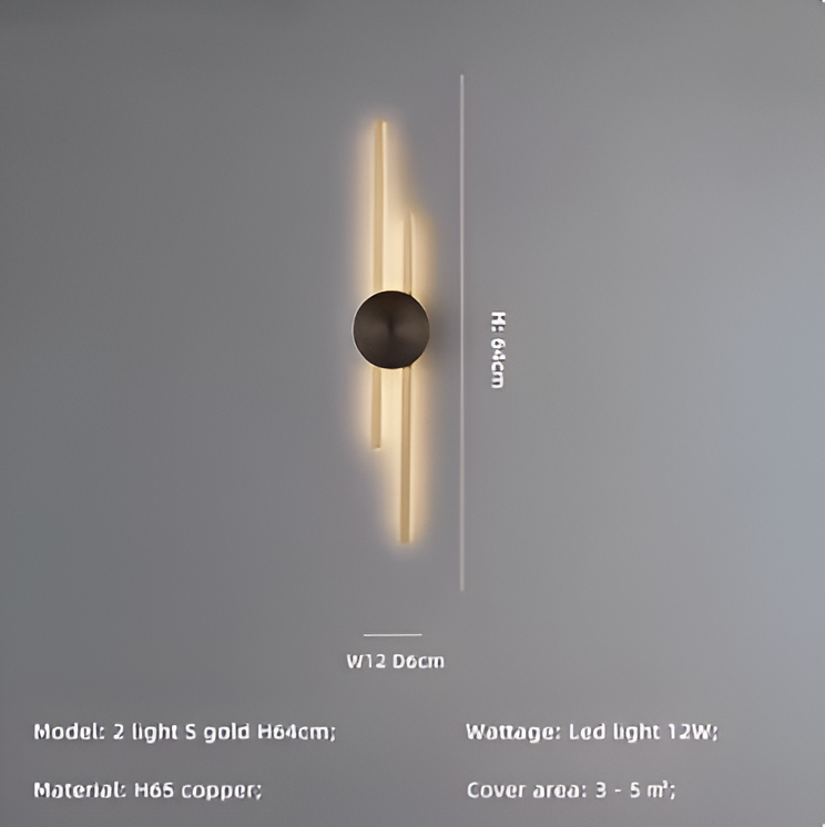 Frendorf | StripCop Wandleuchte - Gold Schwarz Linear Wandleuchte - Wandleuchte Design - Kupfer Wandleuchten LED