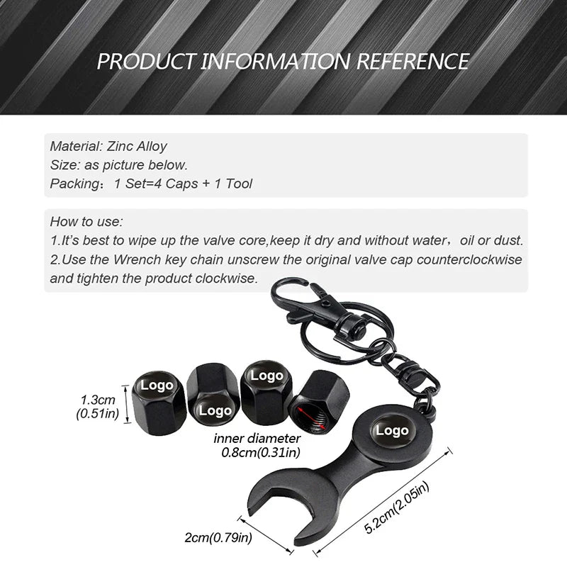 Mit unseren TyreGem sind Ihre Reifen stilvoll geschützt. Diese Ventilkappen sind nicht nur elegant, sondern auch langlebig und einfach zu installieren. Der dazugehörige Logo Schlüsselanhänger fügt eine zusätzliche Note von Klasse und Funktionalität hinzu. Egal, welches Auto Sie fahren – diese Ventilkappen passen perfekt.