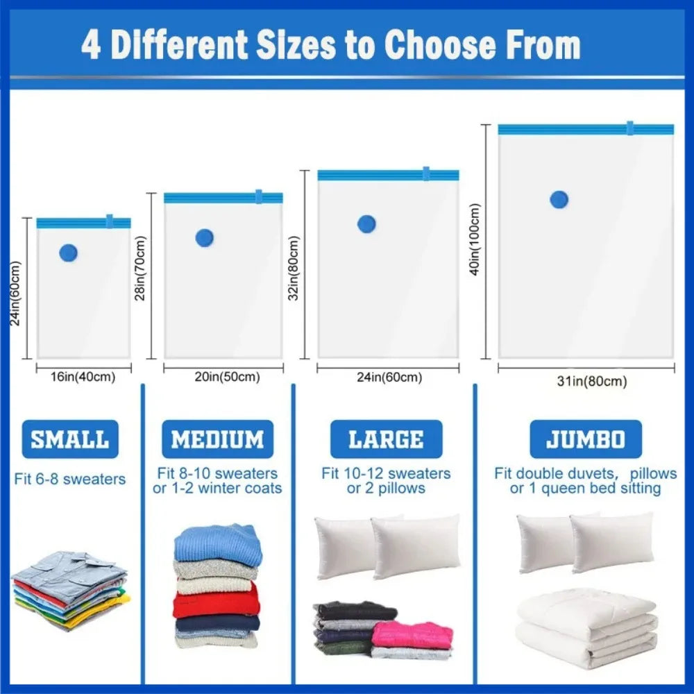 Vakuum-Aufbewahrungsbeutel, um Ihren Koffer optimal für die Reise zu packen oder saisonale Kleidung und Bettwäsche zu Hause aufbewahren!