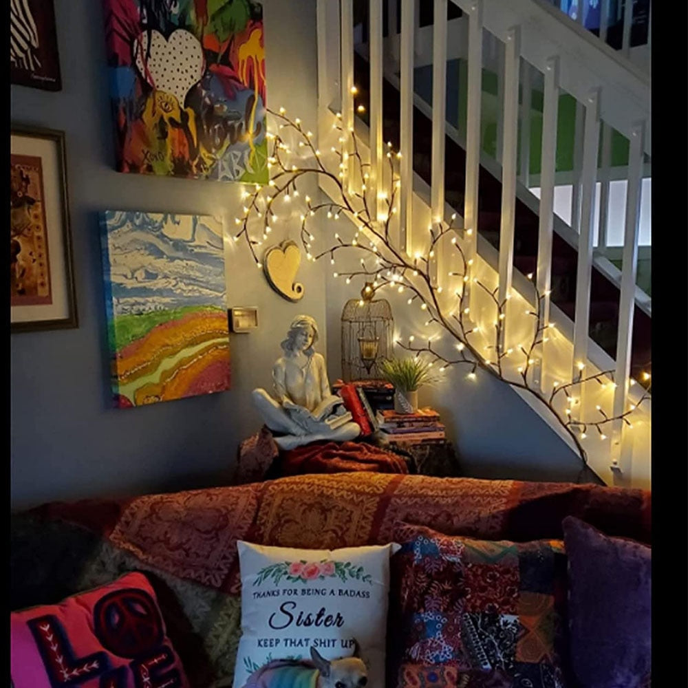 Wickeln Sie die Zweige um einen Kronleuchter oder bringen Sie sie an der Wand an, um eine behagliche und einladende Stimmung zu erzeugen. Mit diesen Lichtern verwandeln Sie Ihr Zuhause in eine Oase der Ruhe und Entspannung.