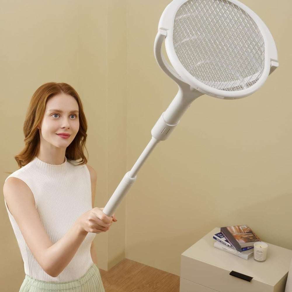Der ergonomische Griff sorgt für sicheren Halt und ermöglicht mühelose Anwendung. Ein dreilagiges Sicherheitsnetz verhindert unbeabsichtigten Kontakt mit dem Gerät und macht es sicher für die gesamte Familie. Dank seiner stabilen Konstruktion gewährleistet es eine langfristige Zuverlässigkeit und bewältigt auch häufige Anwendungen problemlos. Das durchdachte Design gewährleistet eine effiziente Insektenbekämpfung mit minimalem Aufwand.