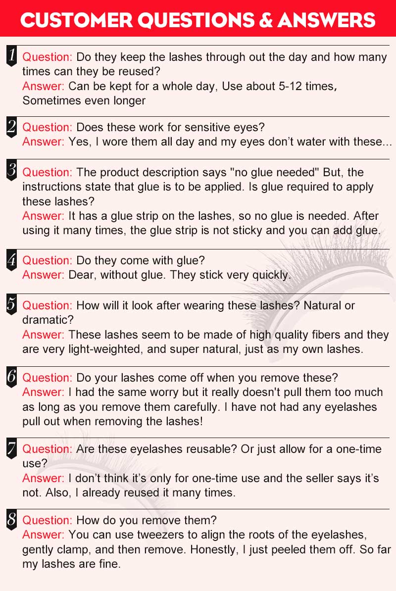 Die künstlichen Wimpern sind sowohl wiederverwendbar als auch waschbar für eine hygienischere Anwendung. Sie werden mit austauschbaren Klebestreifen geliefert, dieauch nach wiederholtem Gebrauch sicher halten.