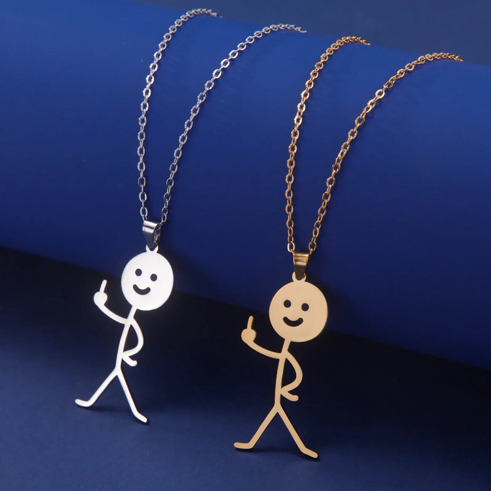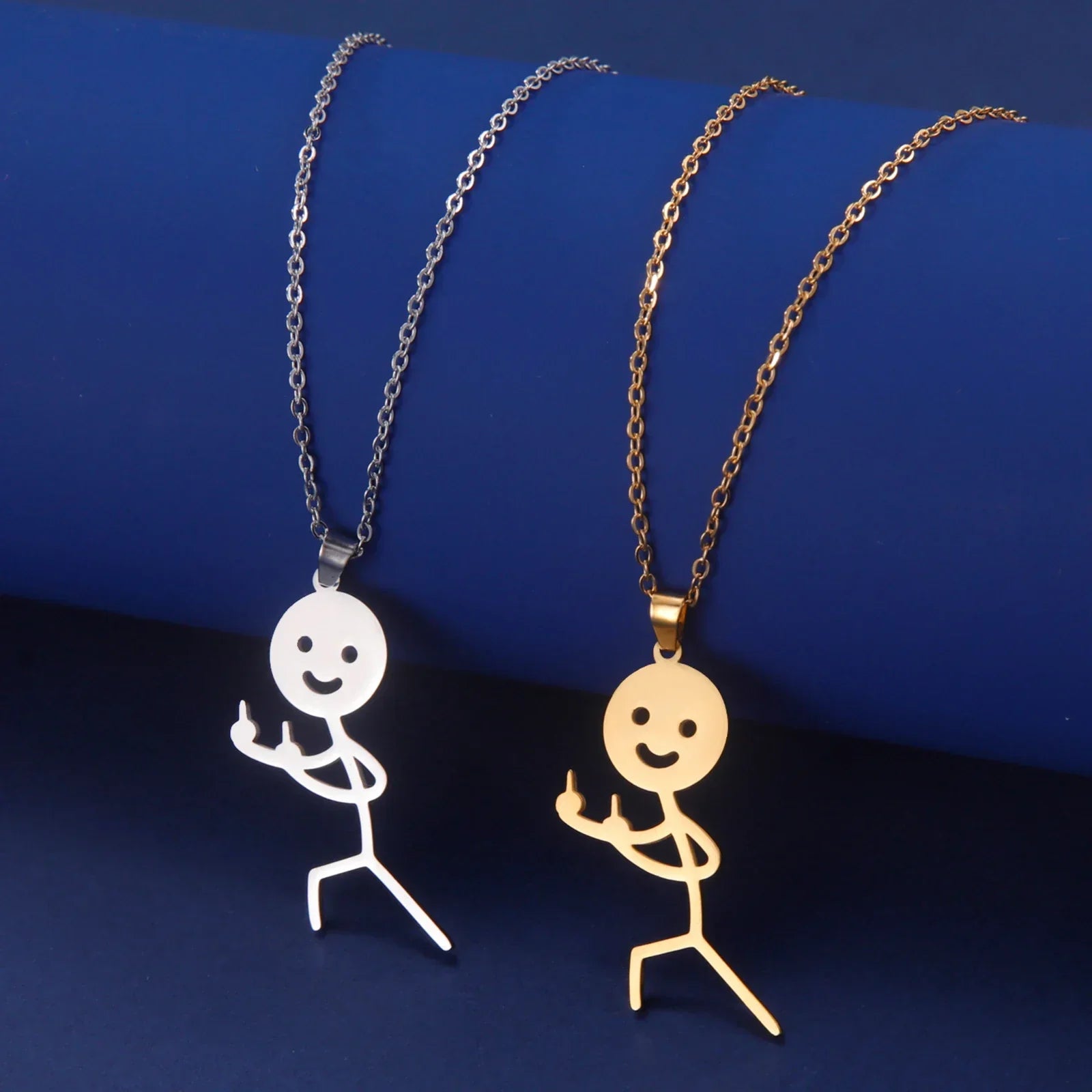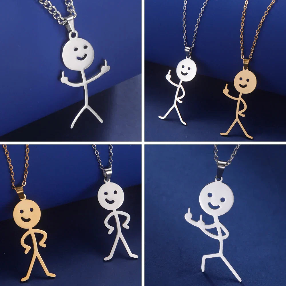 Diese außergewöhnliche Stickman-Halskette vereint Humor und Punk-Style mit ihrem Design des Mittelfingers. Sie wurde mit großer Sorgfalt hergestellt und ist ein ideales Geschenk für alle, die ausgefallenen Schmuck mit einer Portion Charakter schätzen.