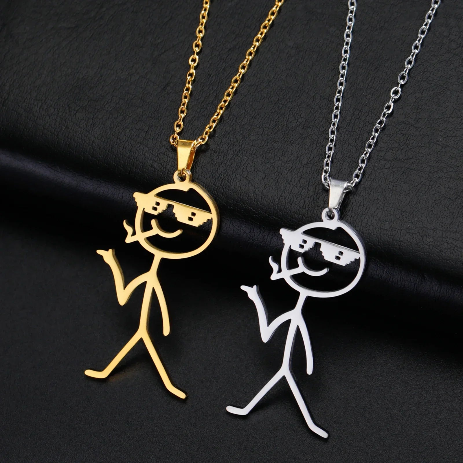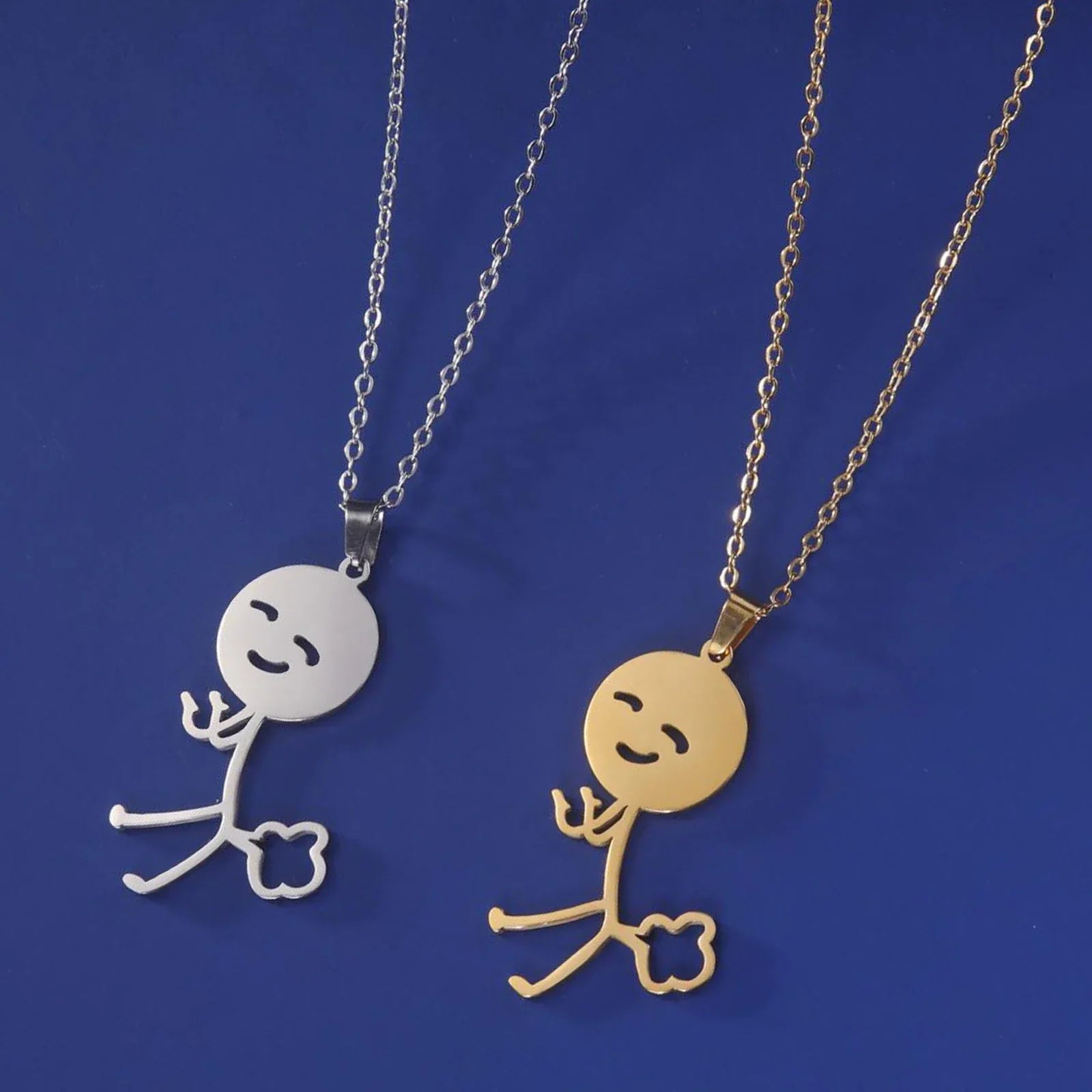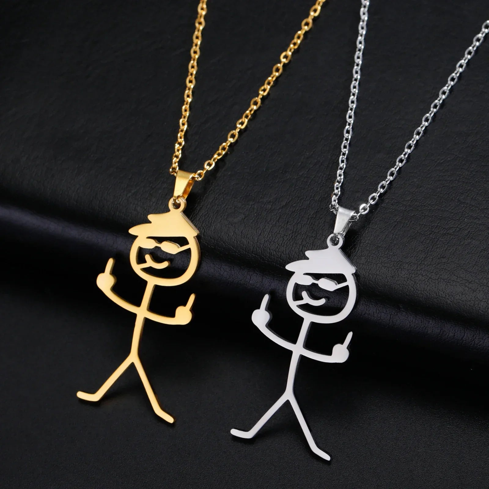 Diese außergewöhnliche Stickman-Halskette vereint Humor und Punk-Style mit ihrem Design des Mittelfingers. Sie wurde mit großer Sorgfalt hergestellt und ist ein ideales Geschenk für alle, die ausgefallenen Schmuck mit einer Portion Charakter schätzen.
