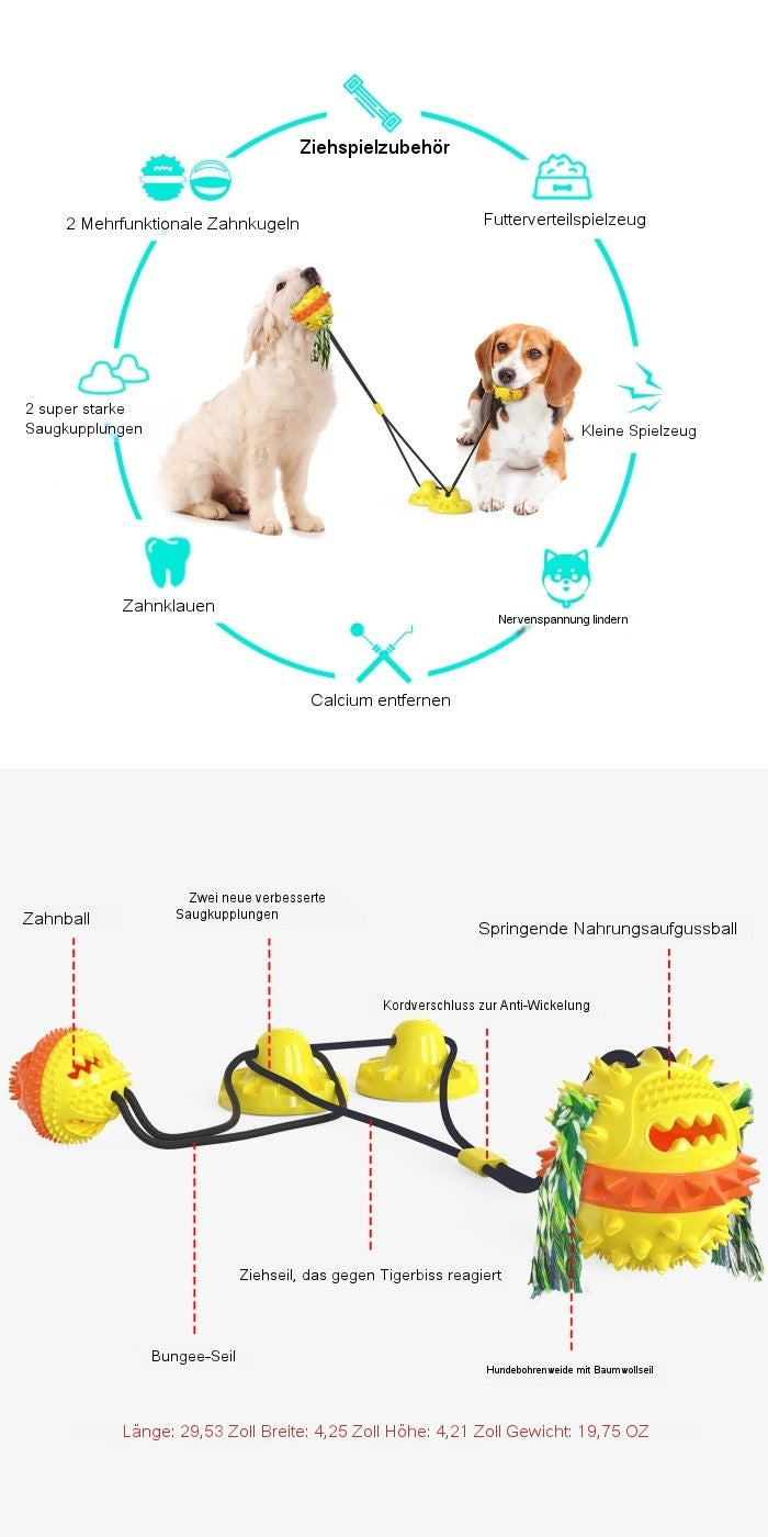 Bring die Spielzeit auf die nächste Stufe mit diesem Seilspielzeug mit doppeltem Saugnapf, das zwei strapazierfähige Kauspielzeuge enthält. Entworfen für Hunde, die ununterbrochen ziehen und kauen, bietet es endlose Unterhaltung und fördert aktives Training.